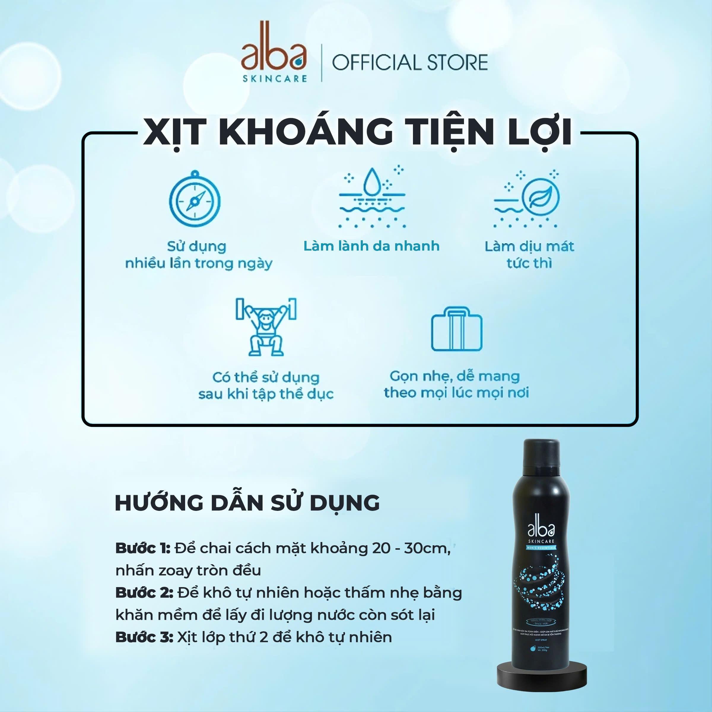 [MUA 1 TẶNG 1] [MEN] Alba Skincare Xịt Khoáng MEN 200ml - Cấp Ẩm, Kềm Dầu & Giảm Mụn Cho Nam